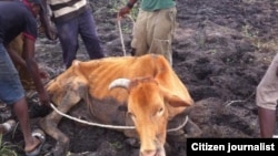 Photographs shared by one villager in Bambadzi, a community in Plumtree District, Matabeleland South Province, shows villagers frantically trying to extricate cattle stuck in the mud at the drying Mabhongane Dam.
