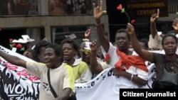 The two, Percy Mcijo and Ambrose Sibindi, were taken in by officers who intercepted the protest, suspecting that it was illegal.