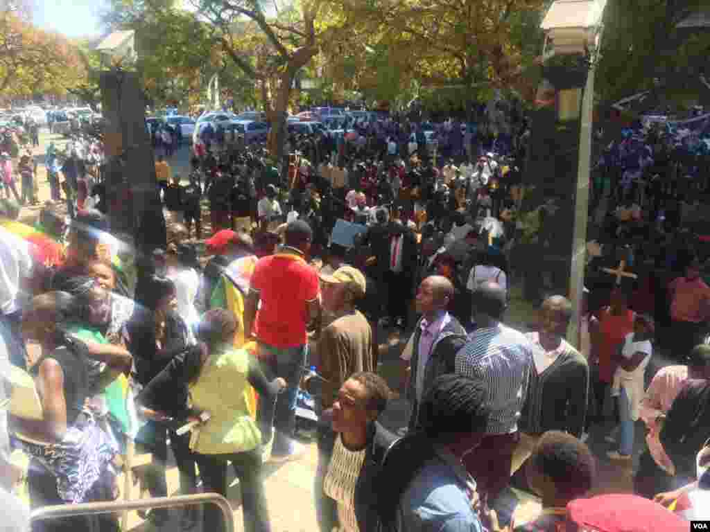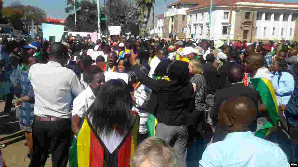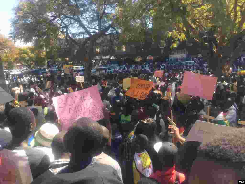 Police descended heavily on the protesters who were waving some placards inscribed “Mugabe Must Go’ and ‘No to Bond Notes’.